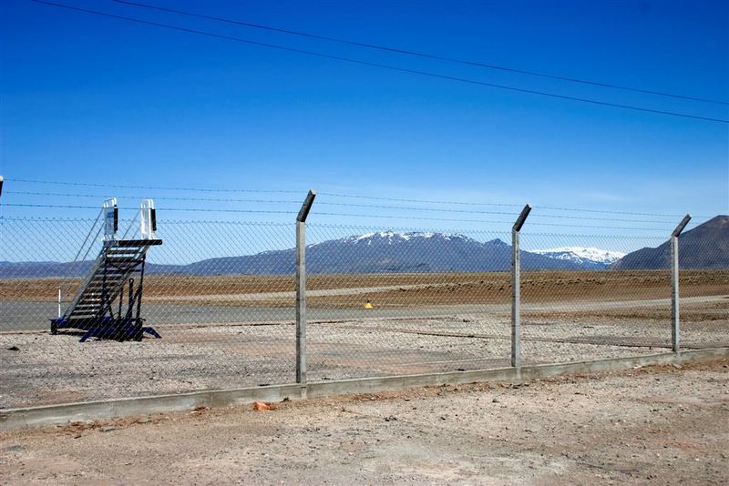Taith i Dde America -- Golygfa drwy'r ffens i'r paith *pesychiad* maes awyr